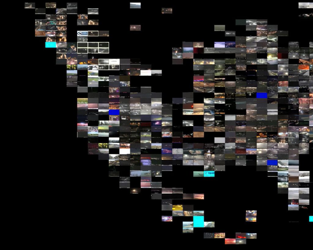 此外,【N城漫游记】还让我想起Netlag【10】,一个用遍布于世界各地的摄像头剪辑、配乐而成的小作品。开始有些奇怪,为什么会像体育场玩人浪一样,从右向左闪烁。等镜头拉近,恍然大悟——原来是昼夜变换。在摄像头的选择上,欧洲大城市多是道路画面,北美大多是城市全景,而南美大多是海滩,真的是很有趣的一个作品。相对来说,【N城漫游记】大概可以算是Netlag的“城市公交静态版”了。